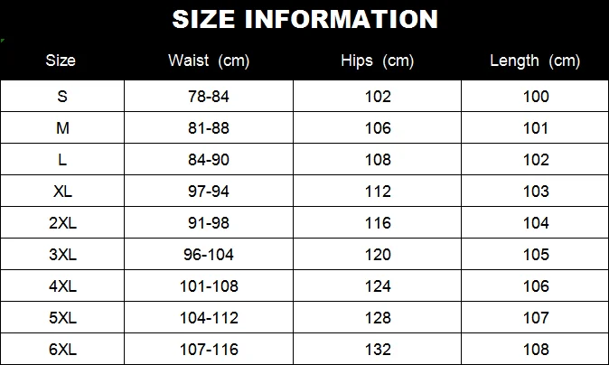 3XL: обхват талии 96-104cmHips120cmLength 105 см