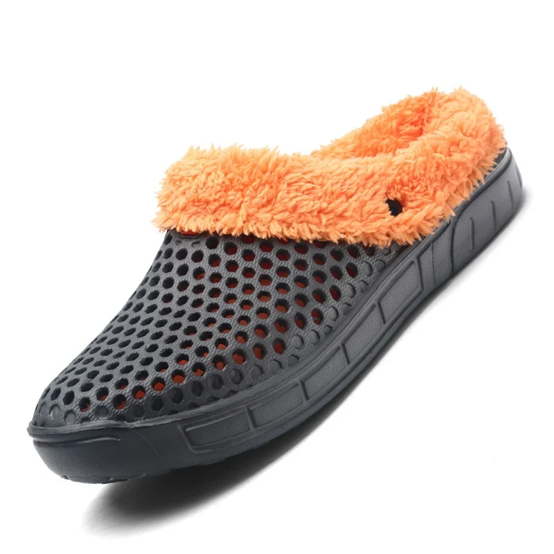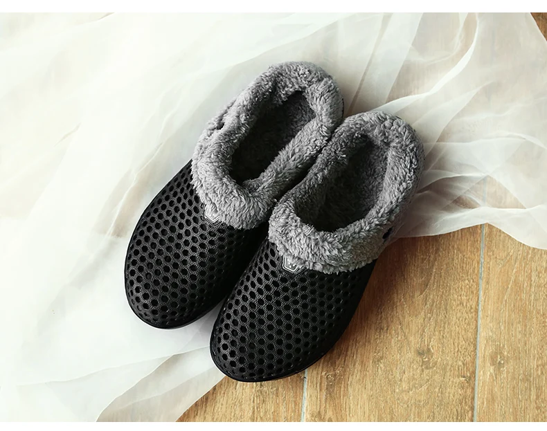 Мужские меховые садовые тапки, черные плюшевые мюли, уличные тапочк...