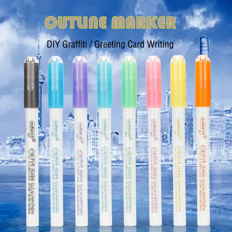 Новейшие Контурные ручки, 8 видов цветов/12 цветов, двойные Контурные ручки, подарочные карты, ручки для рисования на день рождения, скрап-заказ, живопись, поделки для творчества