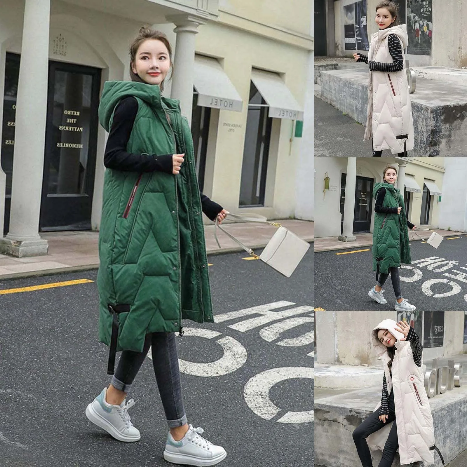 Теплая зимняя женская длинная жилетка 2021, модная повседневная женская верхняя одежда без рукавов с капюшоном, жилет, блузка, рубашки, пальто, женская толстовка, парки