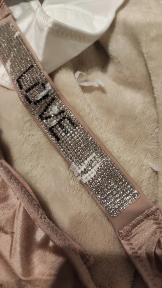 Размер S больше подходит на XS, так и рассчитывала, присутствует небольшой запах клея от страз. В остальном качество хорошее.