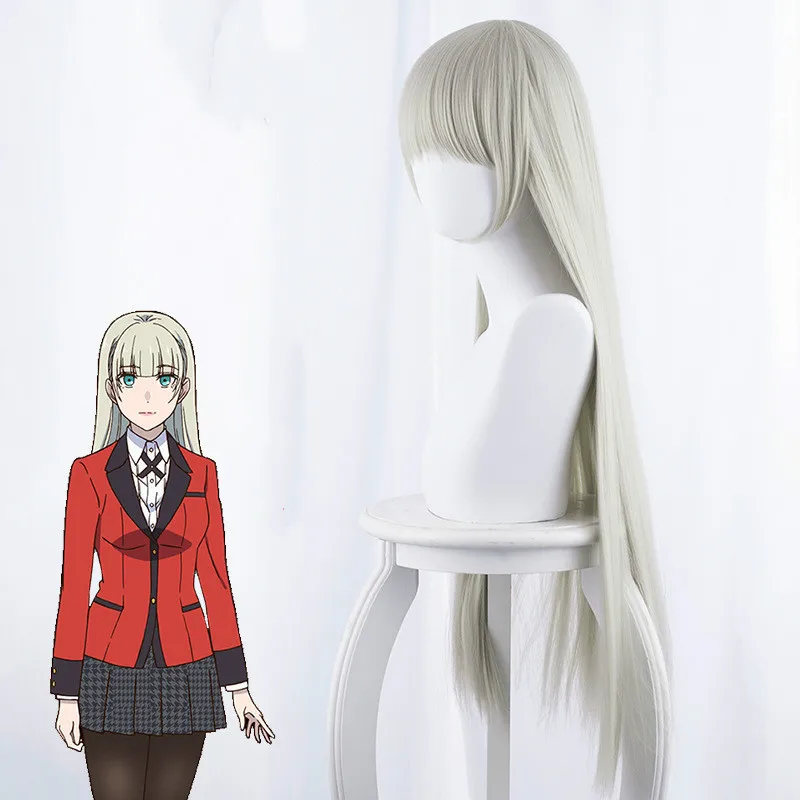 Парик для косплея Kakegurui xx Momobami riririka, жаропрочные длинные прямые синтетические волосы серого цвета, женский парик для костюма из аниме
