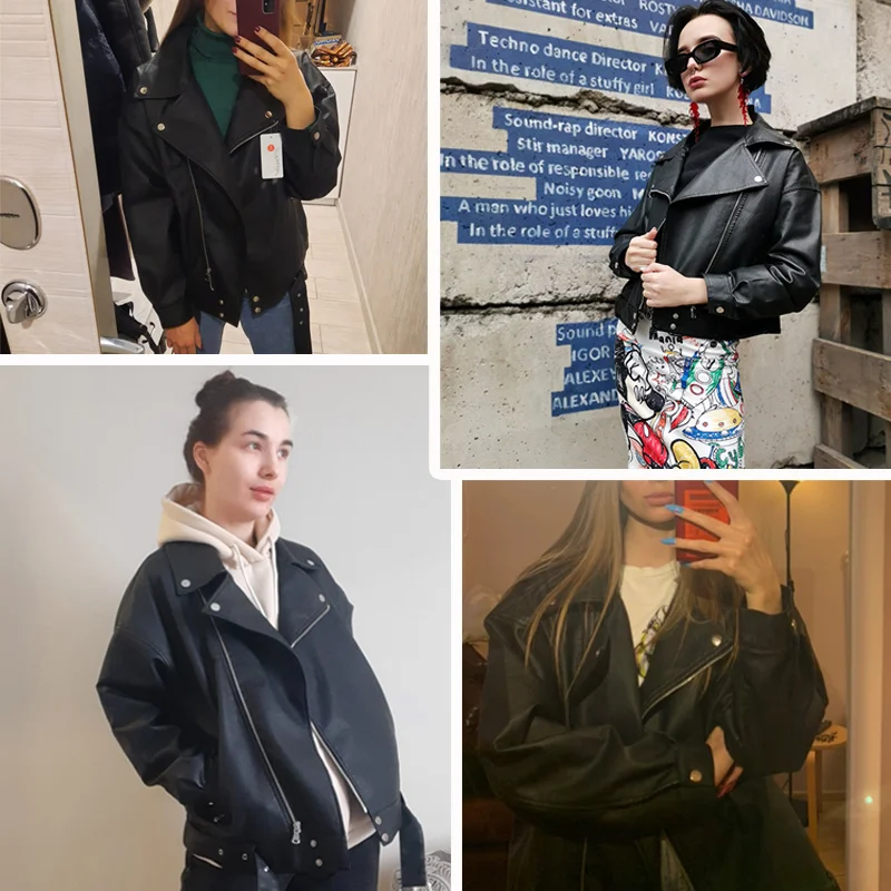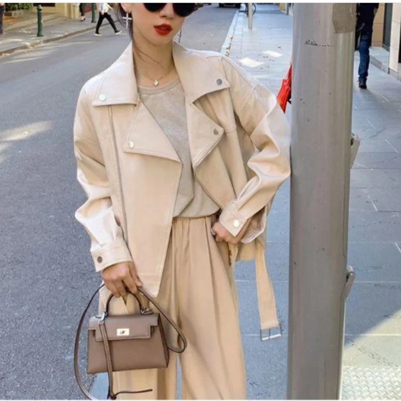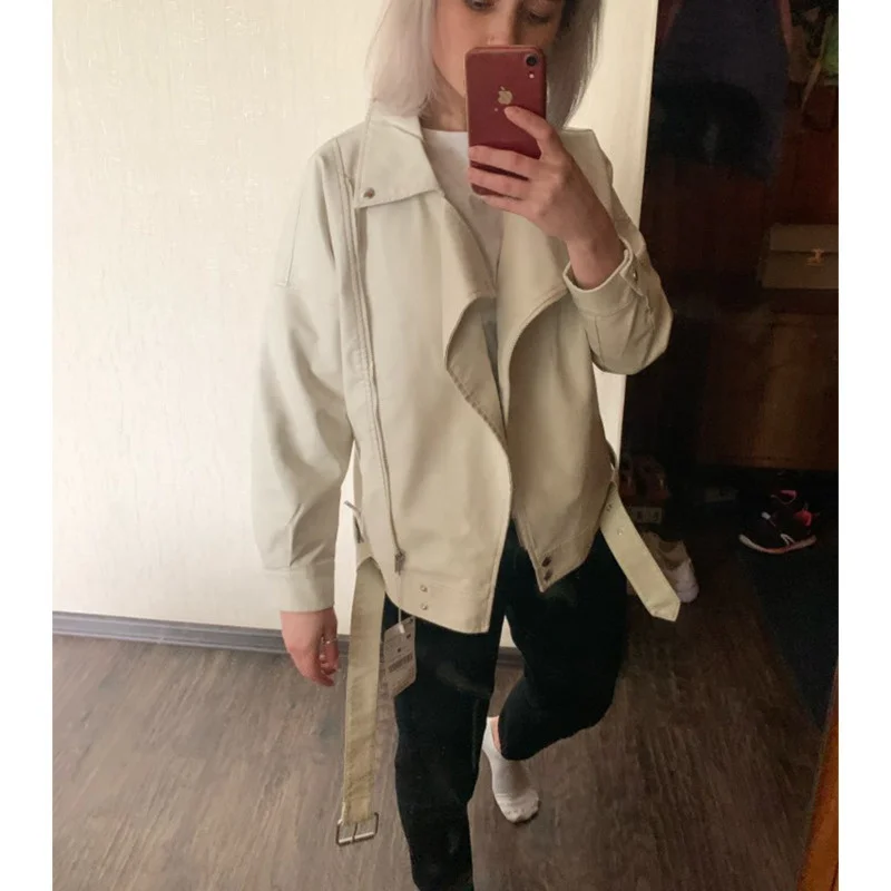 Женская байкерская Куртка из искусственной кожи, осень 2021, новая приталенная Куртка на молнии с карманами и воротником, Повседневная однотонная короткая Куртка
