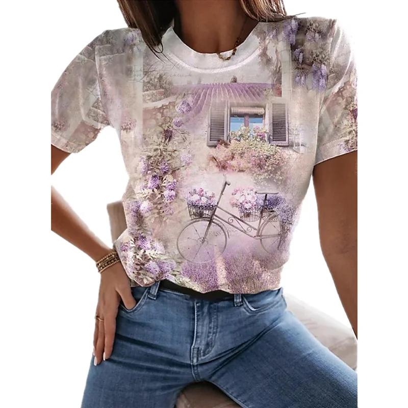 Новинка 2021, Женский Топ с цветочным принтом роз, модная летняя модная повседневная футболка с коротким рукавом, с 3D принтом роз
