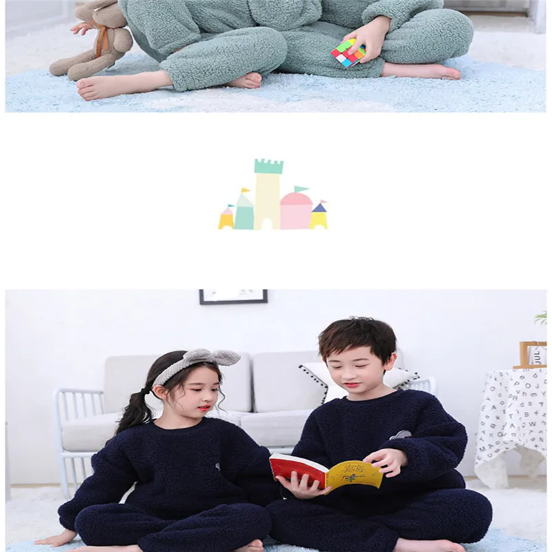 Детский бархатный пижамный комплект из овечьей шерсти на осень и зи...