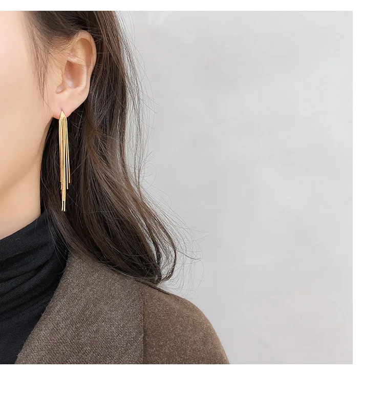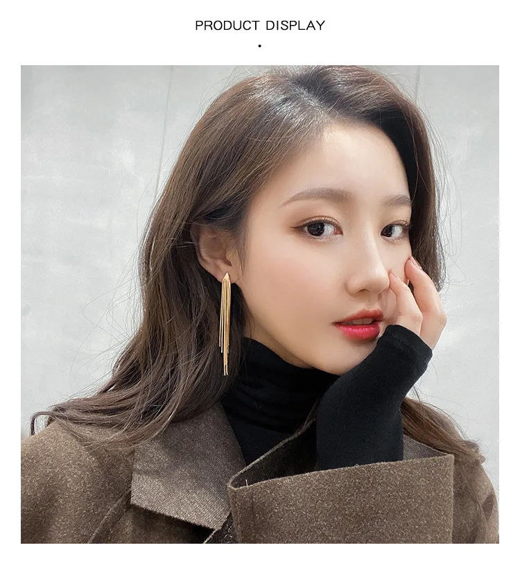Винтажные серьги-подвески золотого цвета с длинной нитью и кисточкой для женщин, глянцевые геометрические корейские серьги с закругленными углами, Модная бижутерия, новинка 2020