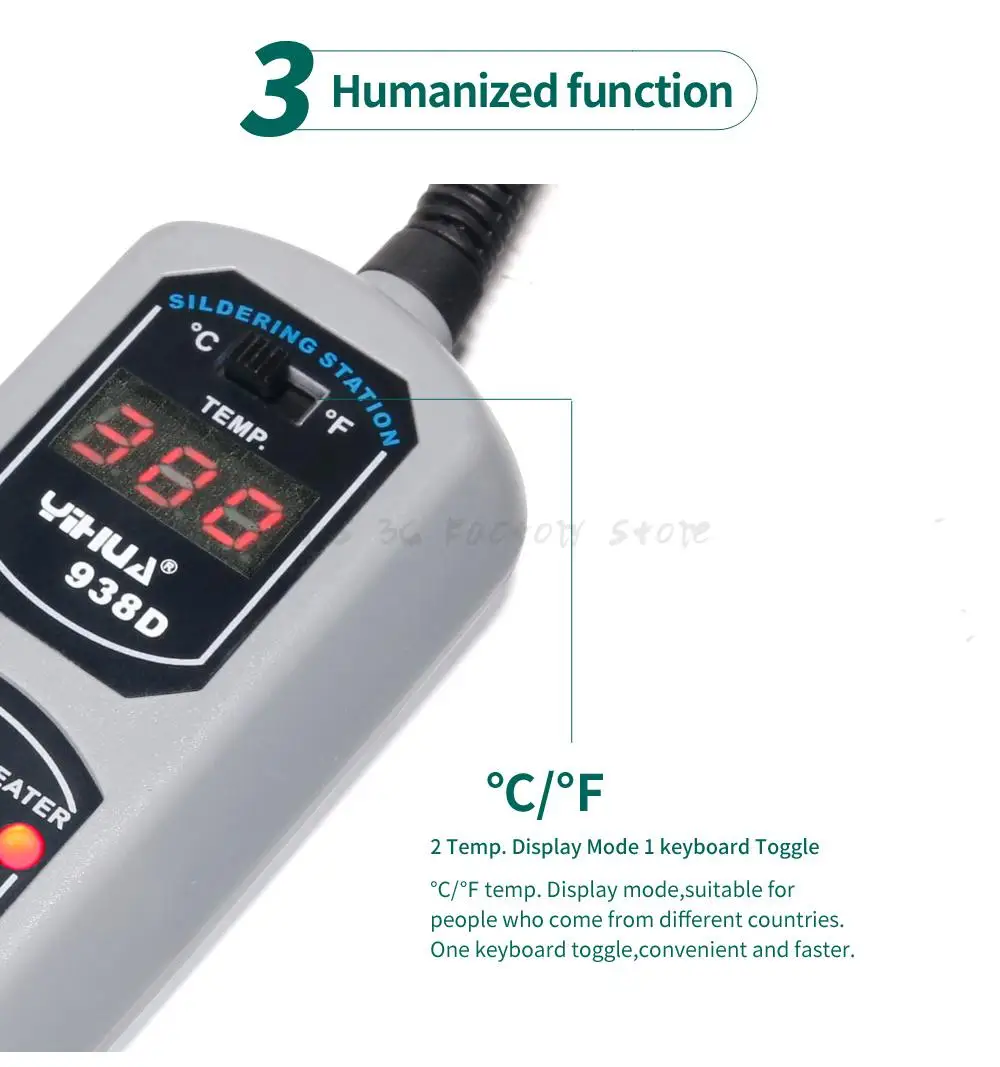YIHUA 938D SMD Пайка Пинцет Ремонт паяльная станция электрическое отопление плоскогубцы постоянная температура нагрева 110 В/220 В ЕС/США штекер