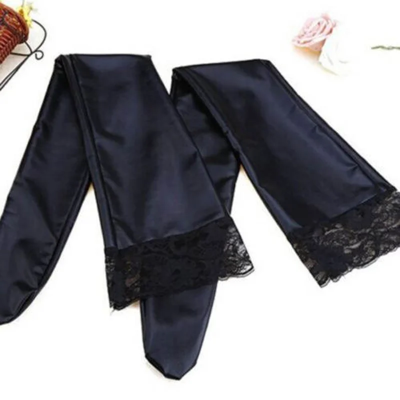 Сексуальные черные кружевные кожаные чулки, женские кружевные лоску...