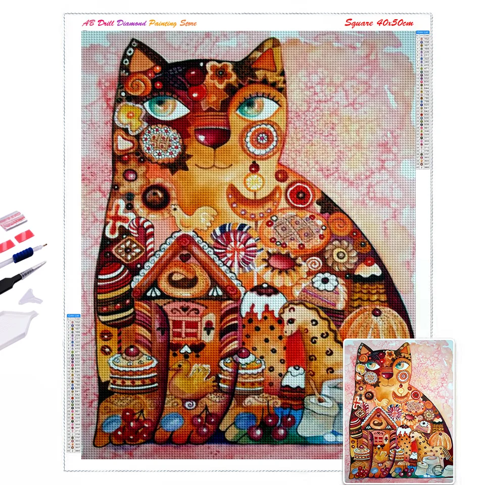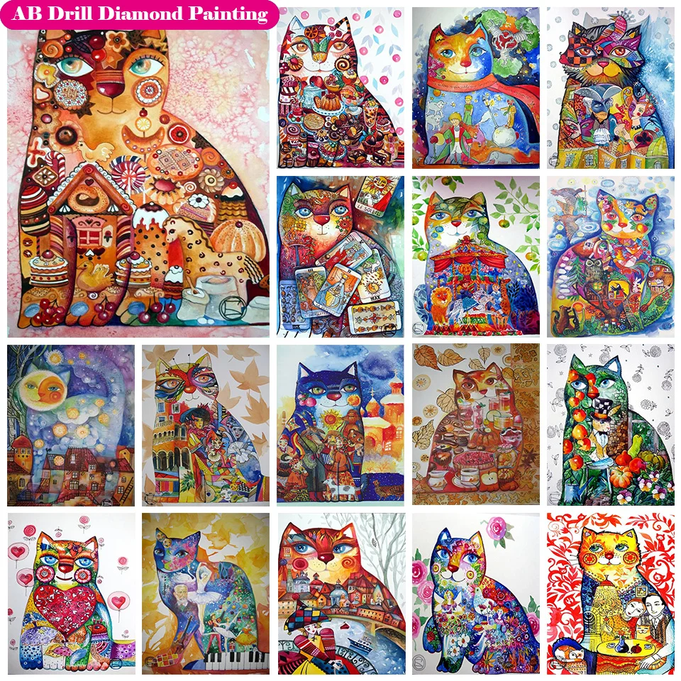 Алмазная живопись AB с котом, вышивка крестиком 5D, алмазная вышивк...