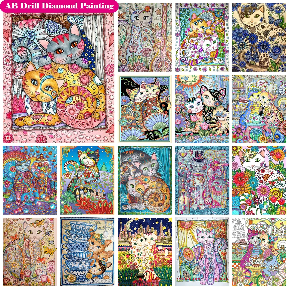 Набор для алмазной живописи 5D сделай сам, мультяшная абстрактная алмазная живопись с квадратнымикруглыми стразами, парная вышивка с кошкой, украшение для дома, художественный подарок