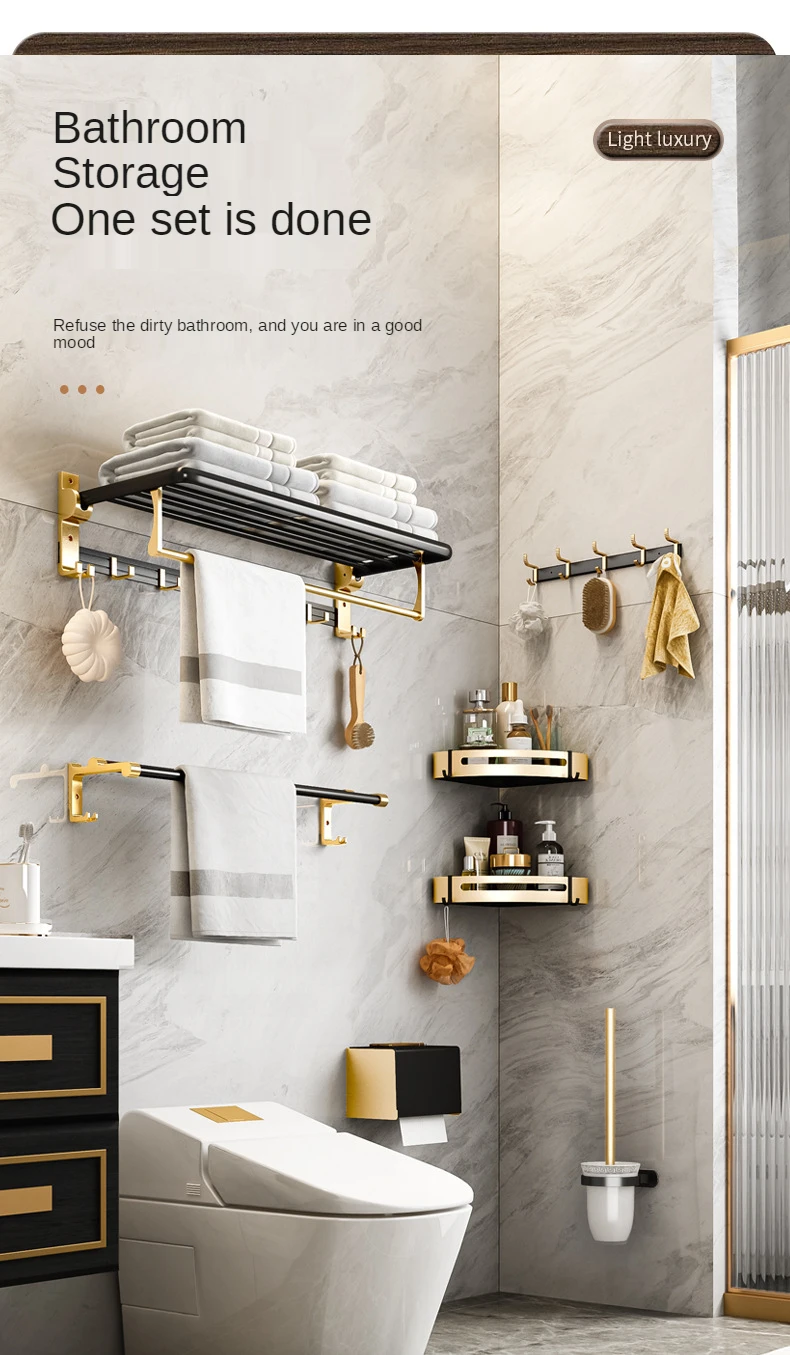 Набор держателей для ванной комнаты, полотенце, туалетная щетка, без перфорации, роскошные полки для туалетной бумаги, занавеска для душа, аксессуары, полка