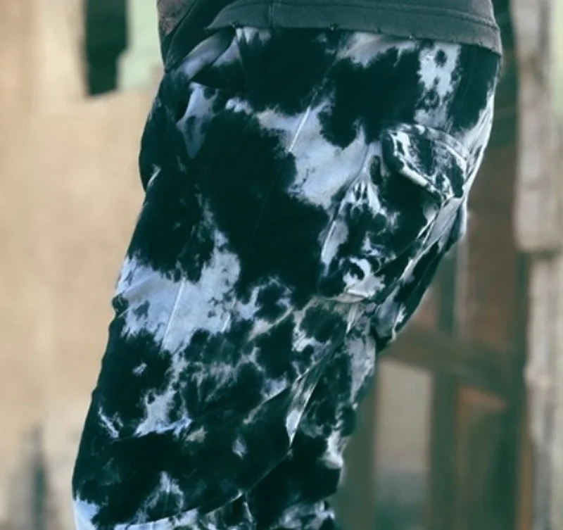Модные мужские джинсы, повседневные свободные прямые брюки Tie-dye ...