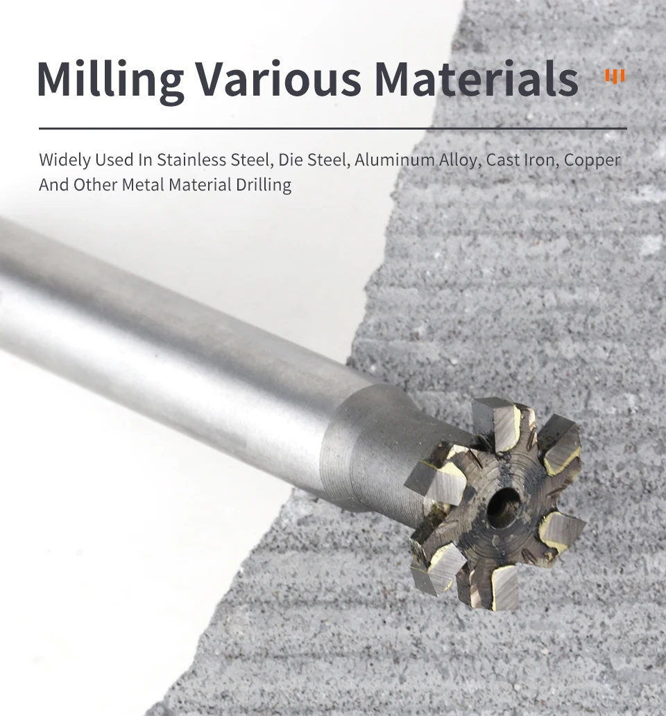 Т-образный фреза из сплава, Вольфрамовая сталь, шероховатый хвостовик, для твердости, металлические торцевые фрезы, металлический ключ