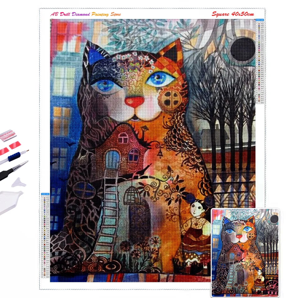 Алмазная живопись AB с котом, вышивка крестиком 5D, алмазная вышивк...