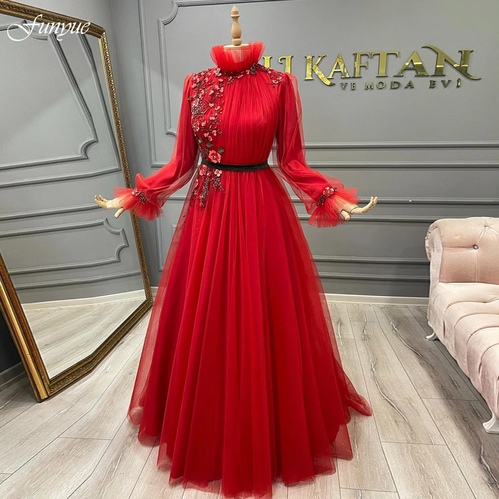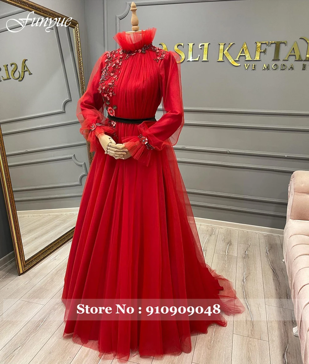 Пыльное синее мусульманское вечернее платье с длинным рукавом, новинка 2021, шифоновое Элегантное Платье трапециевидного силуэта с бисером и плиссировкой, арабское женское платье для официальной вечеринки