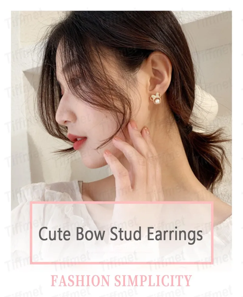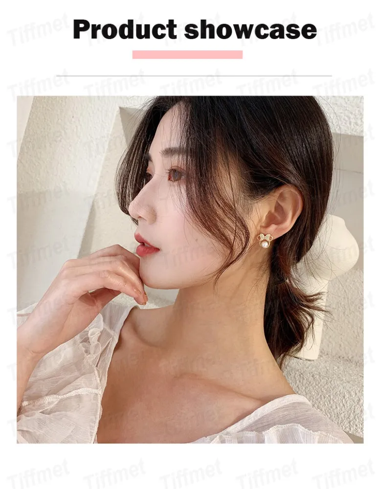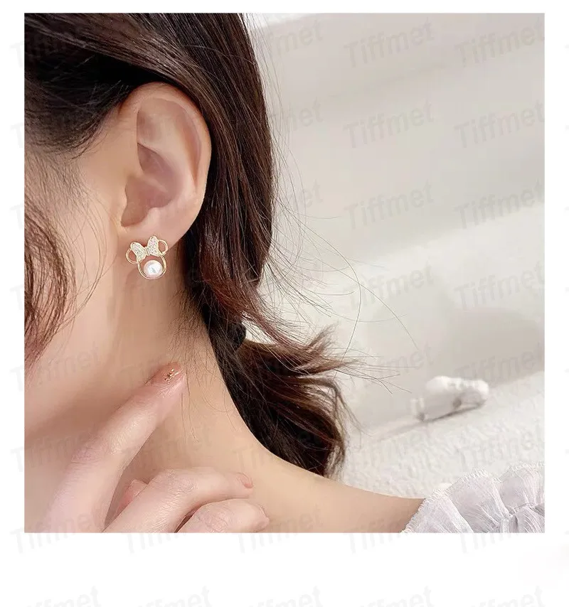 Эти серьги-гвоздики изготовлены из инкрустированных кристаллами бантов и украшены жемчугом, с мультяшным дизайном. Милые, но благородные, элегантные и блестящие, в этих сережках вы станете самой красивой девочкой