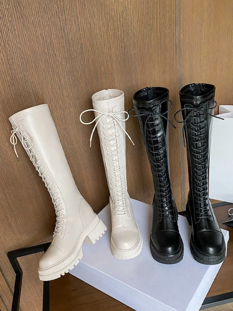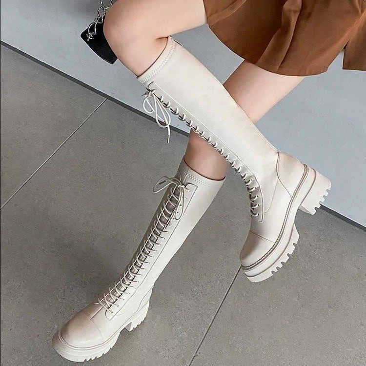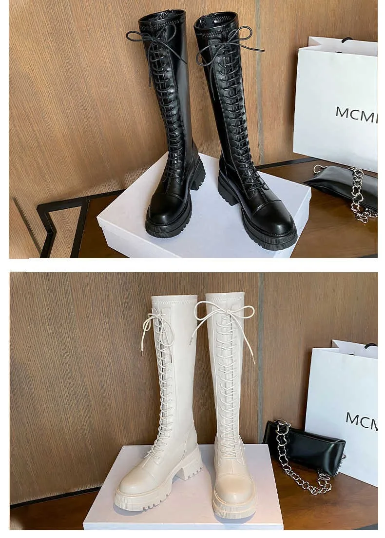 Женские сапоги Челси на толстой подошве, сапоги до колена из искусственной кожи, женские сапоги в стиле панк с увеличенной высотой, на шнуровке, 2022
