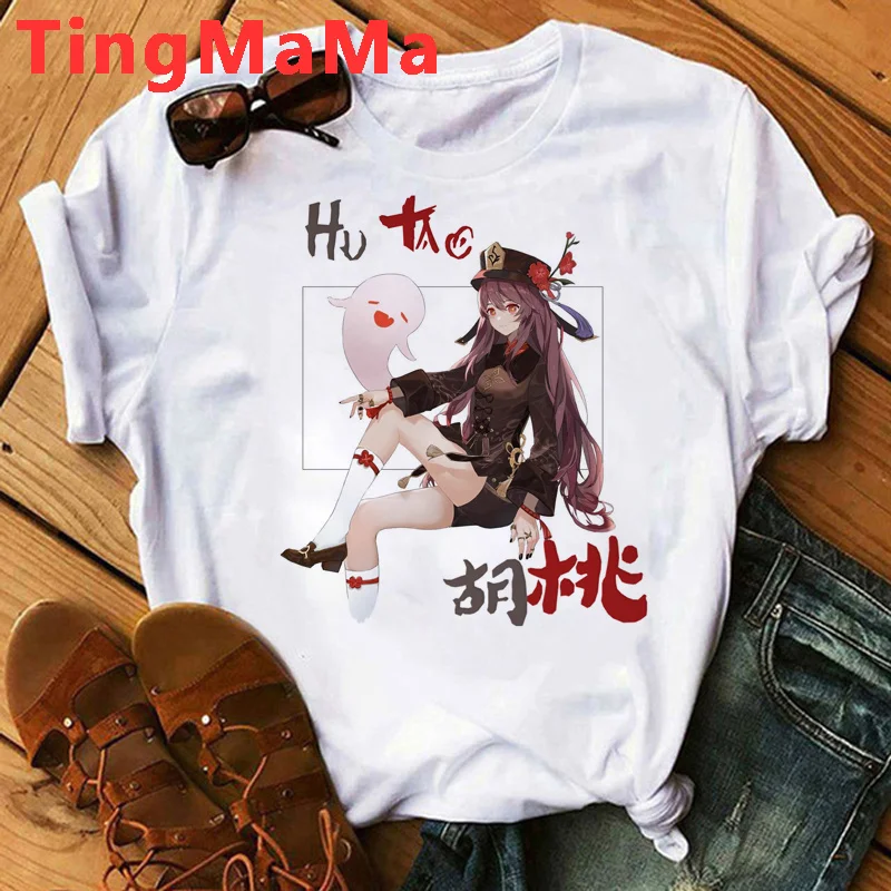 Genshin Impact Hu Tao футболка мужские ulzzang Графические футболки женские белые футболки harajuku уличная одежда kawaii