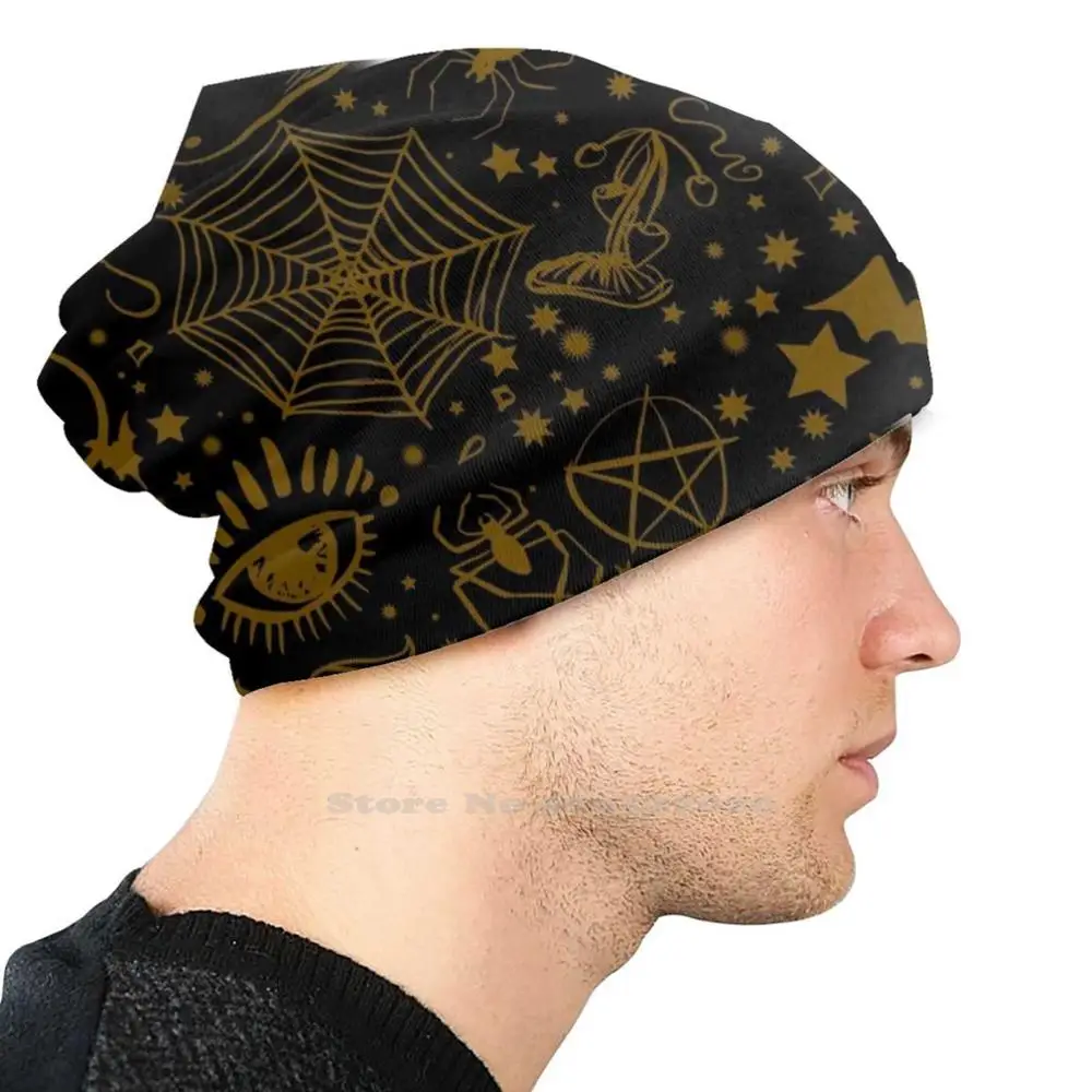 Новинка осенне-зимняя шапка со страшным узором в виде паутины шапочки облегающие шапки страшные Хэллоуин Пауки летучие мыши Луна призрак грибы