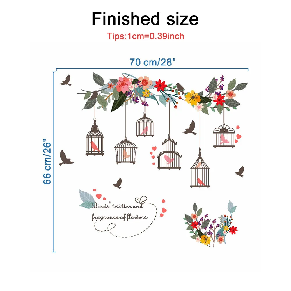 Красочный цветок виноград птица клетка Настенная Наклейка гостиная спальня диван фон фотография фотообои Съемная наклейка s