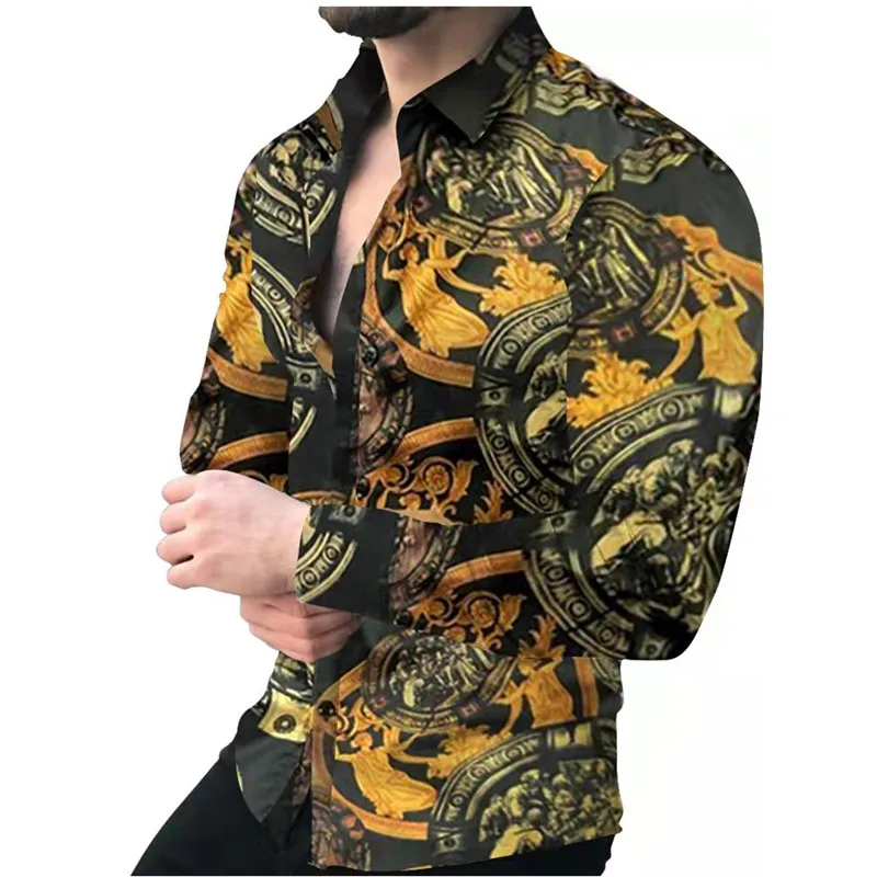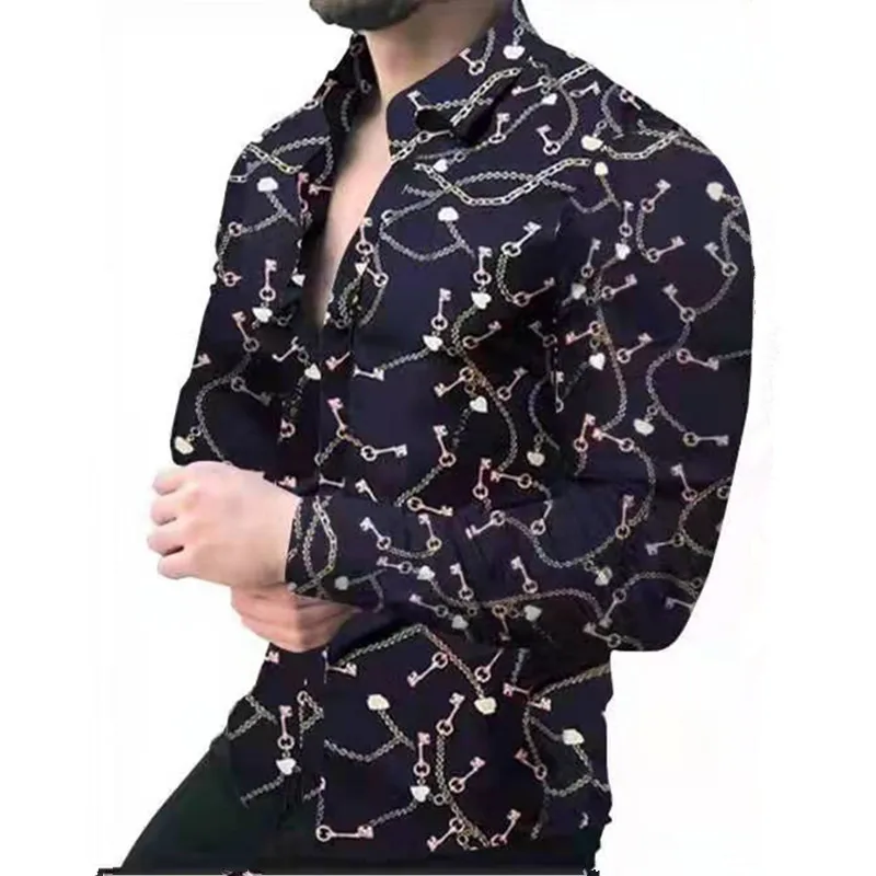 Мужская леопардовая рубашка с длинным рукавом, Повседневная Облегающая рубашка с отложным воротником, уличная одежда с принтом, осень 2021