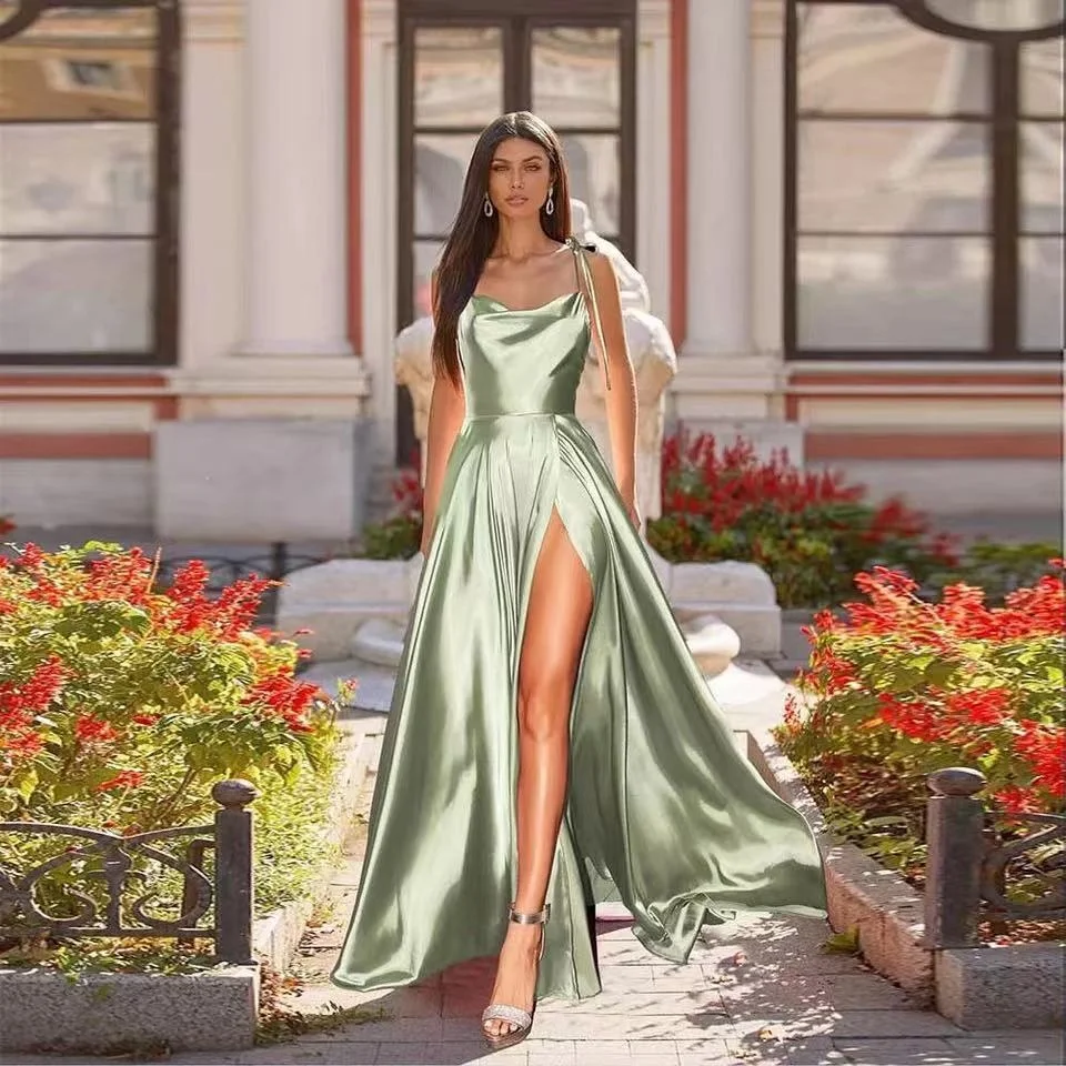 Вечернее платье из атласа Милая Высокий разрез ТРАПЕЦИЕВИДНОЕ сексуальное платье спагетти с низким вырезом на спине Свадебная вечеринка бальное платье для девочек, Vestidos De Fiesta, فساتين السهرة Халат