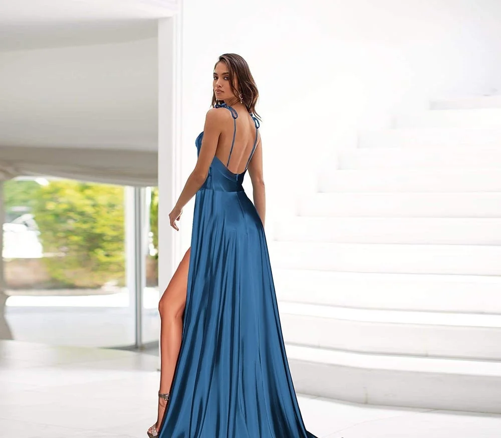 Женское атласное вечернее платье, соблазнительное длинное шелковое платье мятного цвета с высоким разрезом и открытой спиной, платье для выпускного вечера, 2021