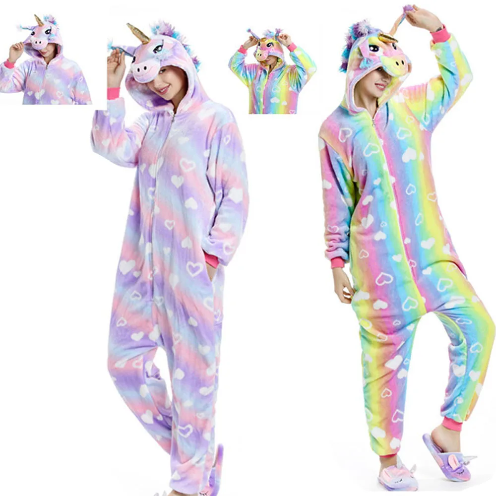Пижама-кигуруми женская зимняя, милая пижама в виде единорога для в...