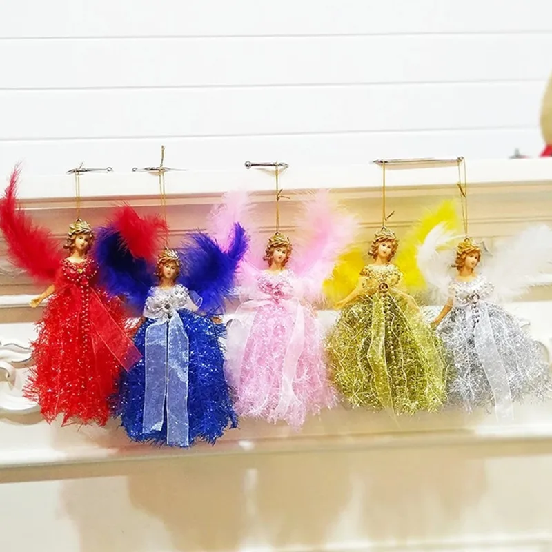 Рождественские Крылья Ангел кукла подвеска Рождественская елка Подвески Искусственные Красные Белые милые крылья эльф Феи топперы игрушка Рождественский Декор