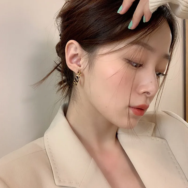 Новые корейские массивные серьги для женщин, коричневые леопардовые геометрические серьги-кольца, винтажные трендовые модные ювелирные изделия 2021, креативные подарки