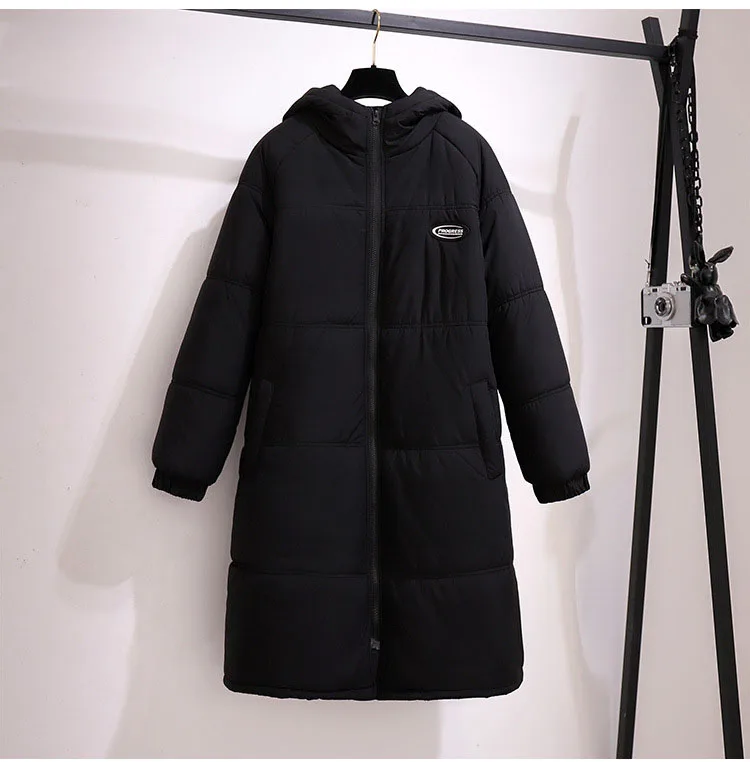 Женская зимняя куртка с капюшоном большого размера 140 кг, Плотная хлопковая куртка с длинным рукавом 140 см 6XL 7XL 8XL
