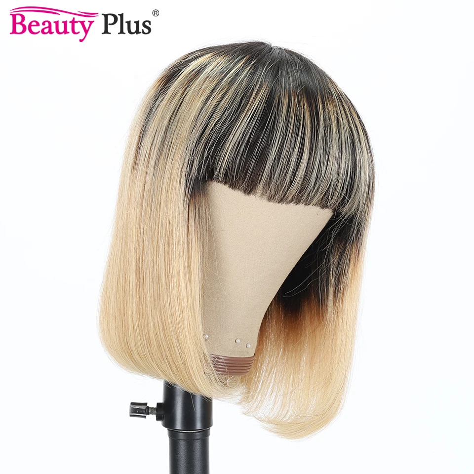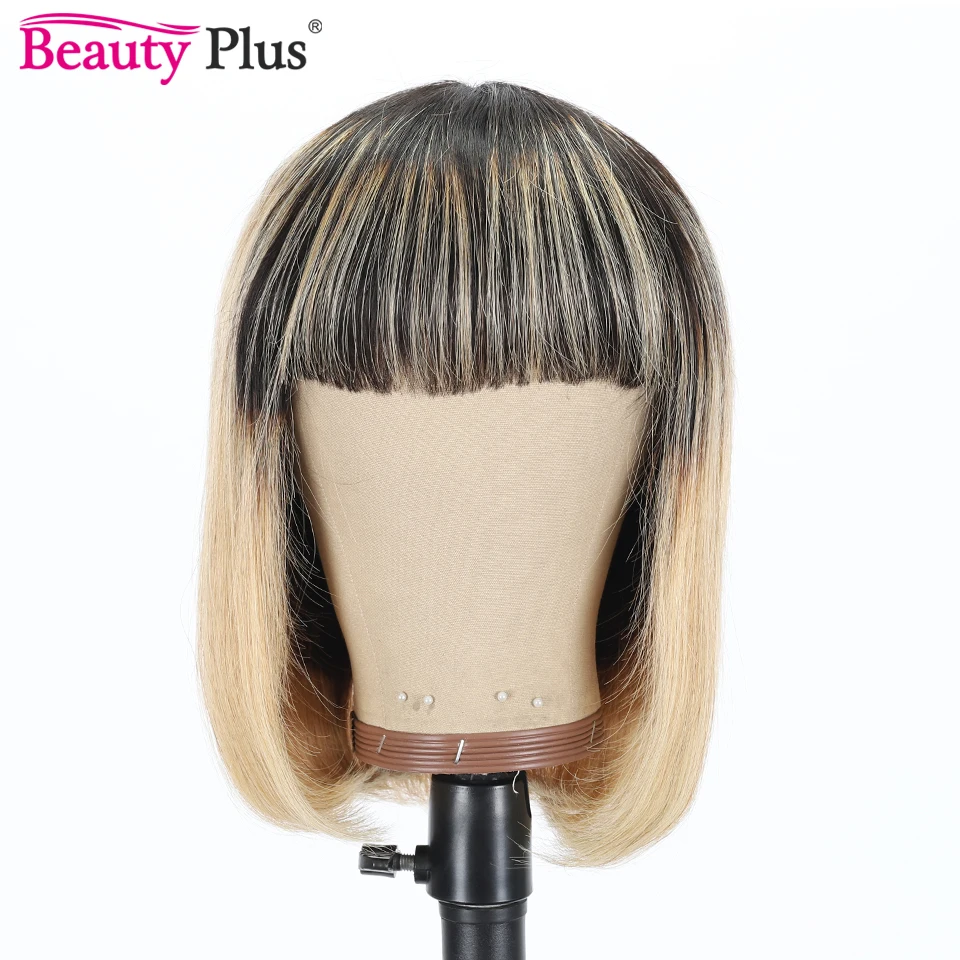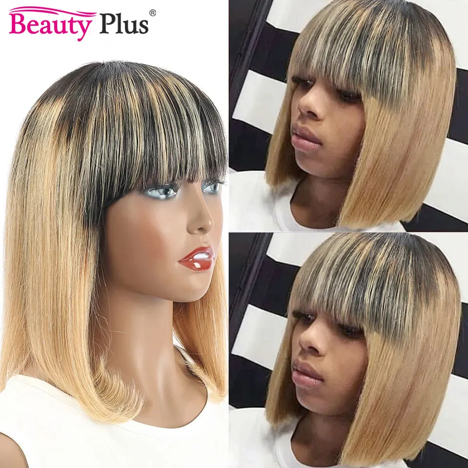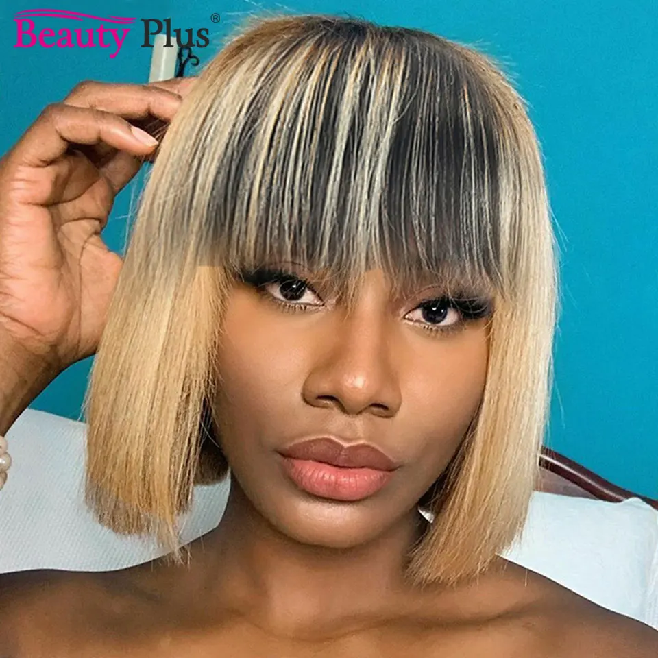 8-14 дюймов короткий Боб прямые челки парик цветной Омбре 1B 27 # Remy человеческие волосы парик с челкой для черных женщин полный машинный парик