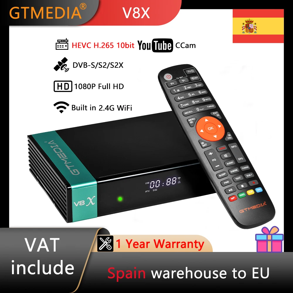 Спутниковый ТВ-приемник Gtmedia V8X, цифровой декодер, обновленный Gtmedia V9 Prime H.265 1080P, встроенный Wi-Fi Ccam Scart CA-карта