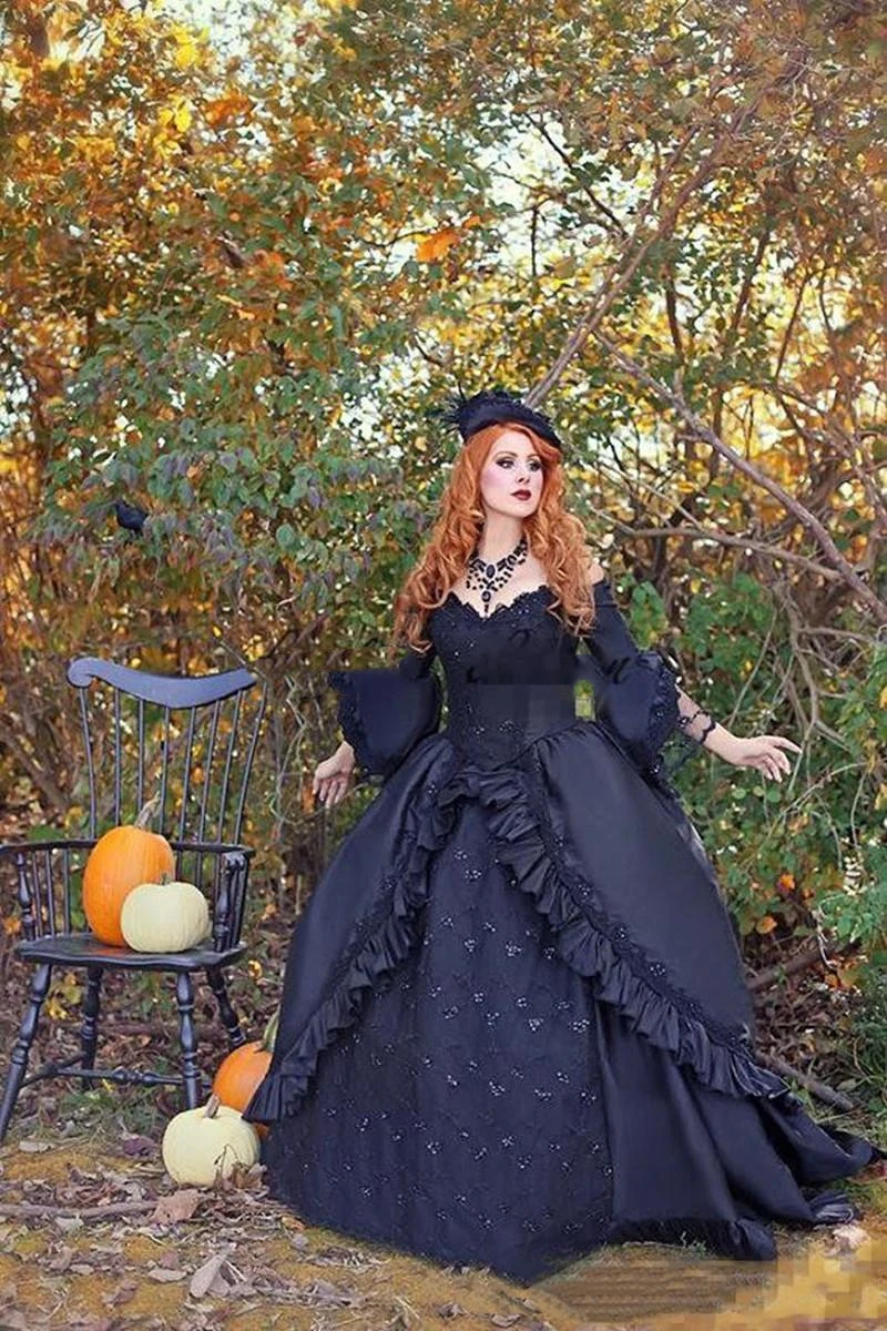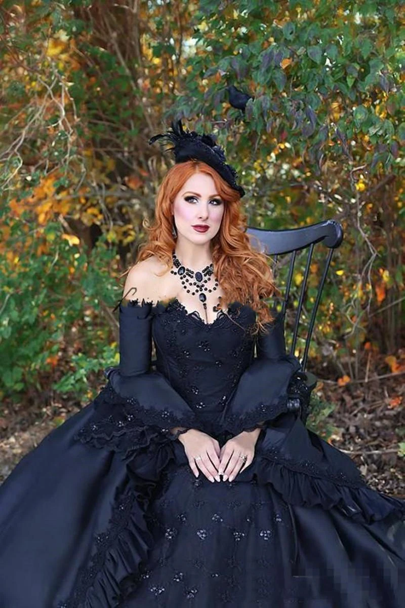 Черное свадебное платье в викторианском стиле, классическое платье невесты в стиле ретро, с длинным рукавом, одежда для особых случаев, 2022