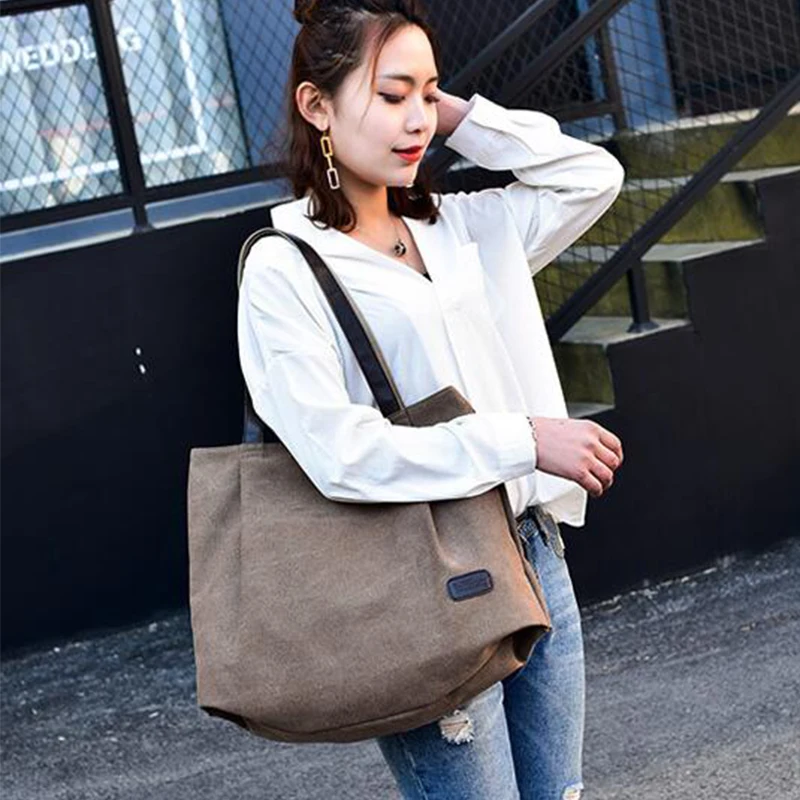 Холщовая повседневная женская сумка-тоут, вместительные сумки на пл...