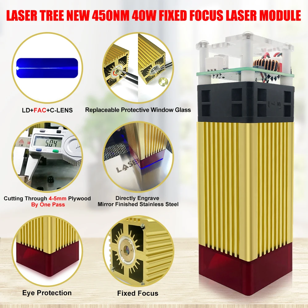 Лазерная гравировальная головка 450 нм 40 Вт TTL DIY Лазерный модуль для гравировки фото, технология сжатого пятна