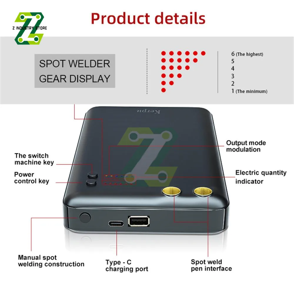 Регулируемый аппарат для точечной сварки с интерфейсом Type-C, 6 передач, ручка для точечной сварки 18650, инструмент для точечной сварки