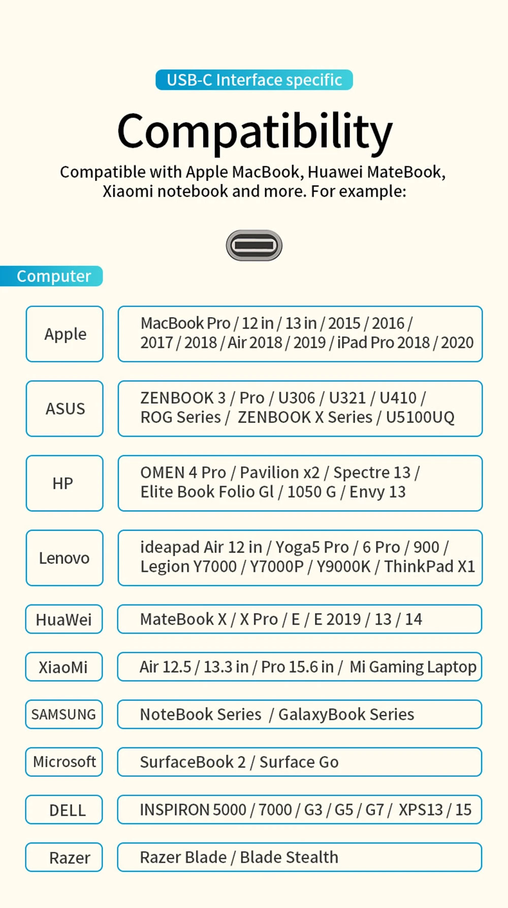 Feature 1usb type c adapter for macbook air
