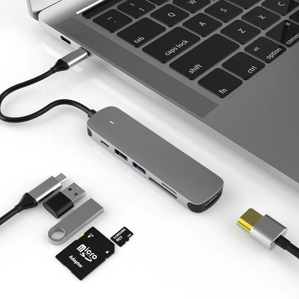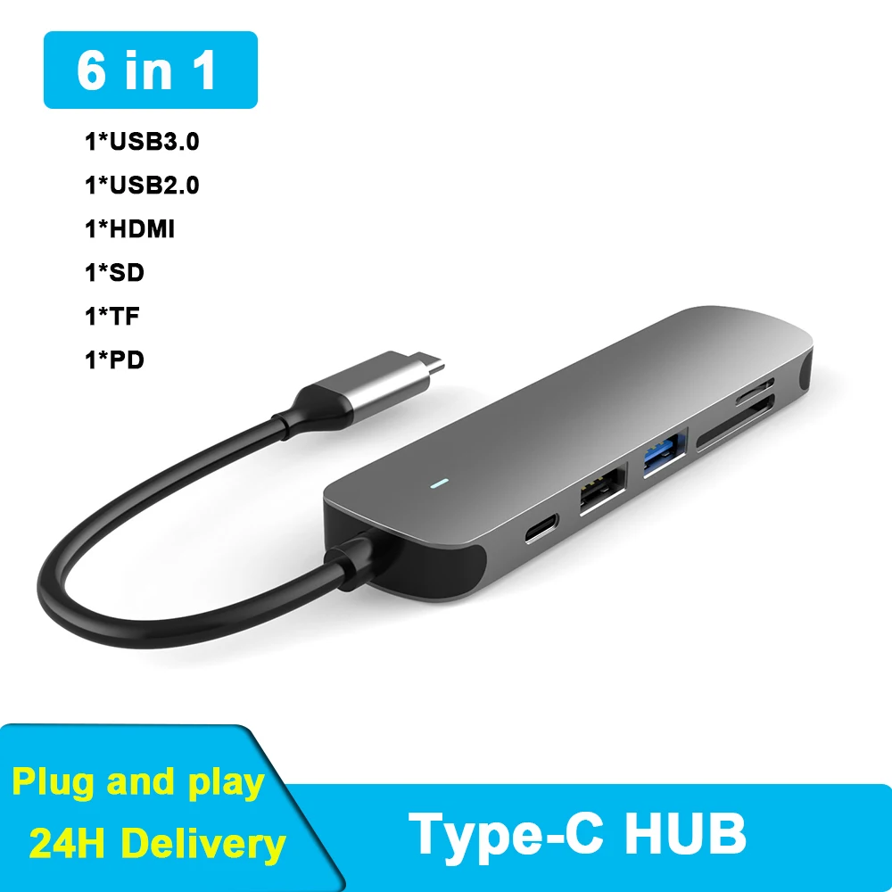 Док-станция USB Type-CHDMI, 6 в 1, 4K, с кардридером 3,0 TF, SD, PD...