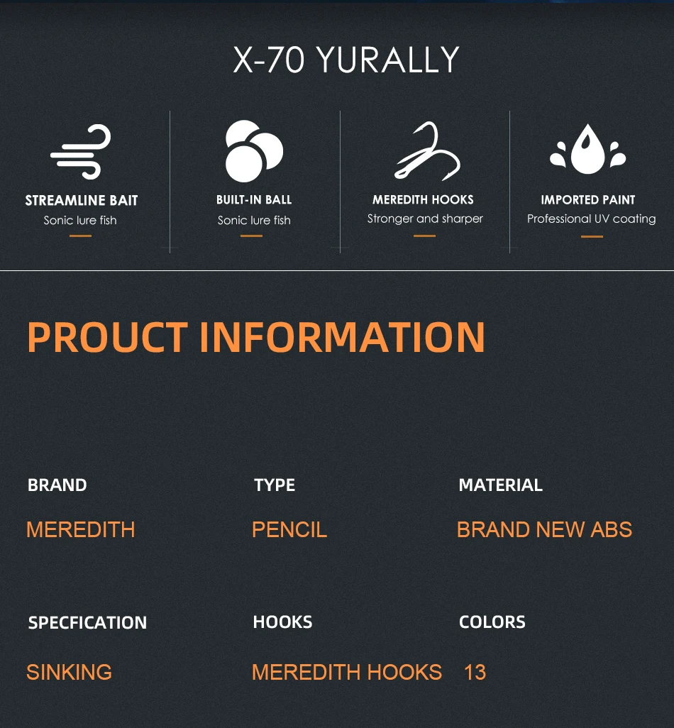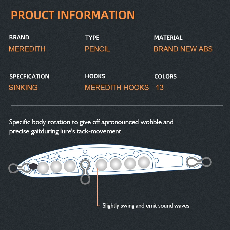 MEREDITH Jerk рыбалка карандаш,рыбалка снасти Тонущая искусственная рыболовная снасть, приманки, Рыболовные аксессуары для рыбной ловли, приманка для троллинга воблеры для рыбалки