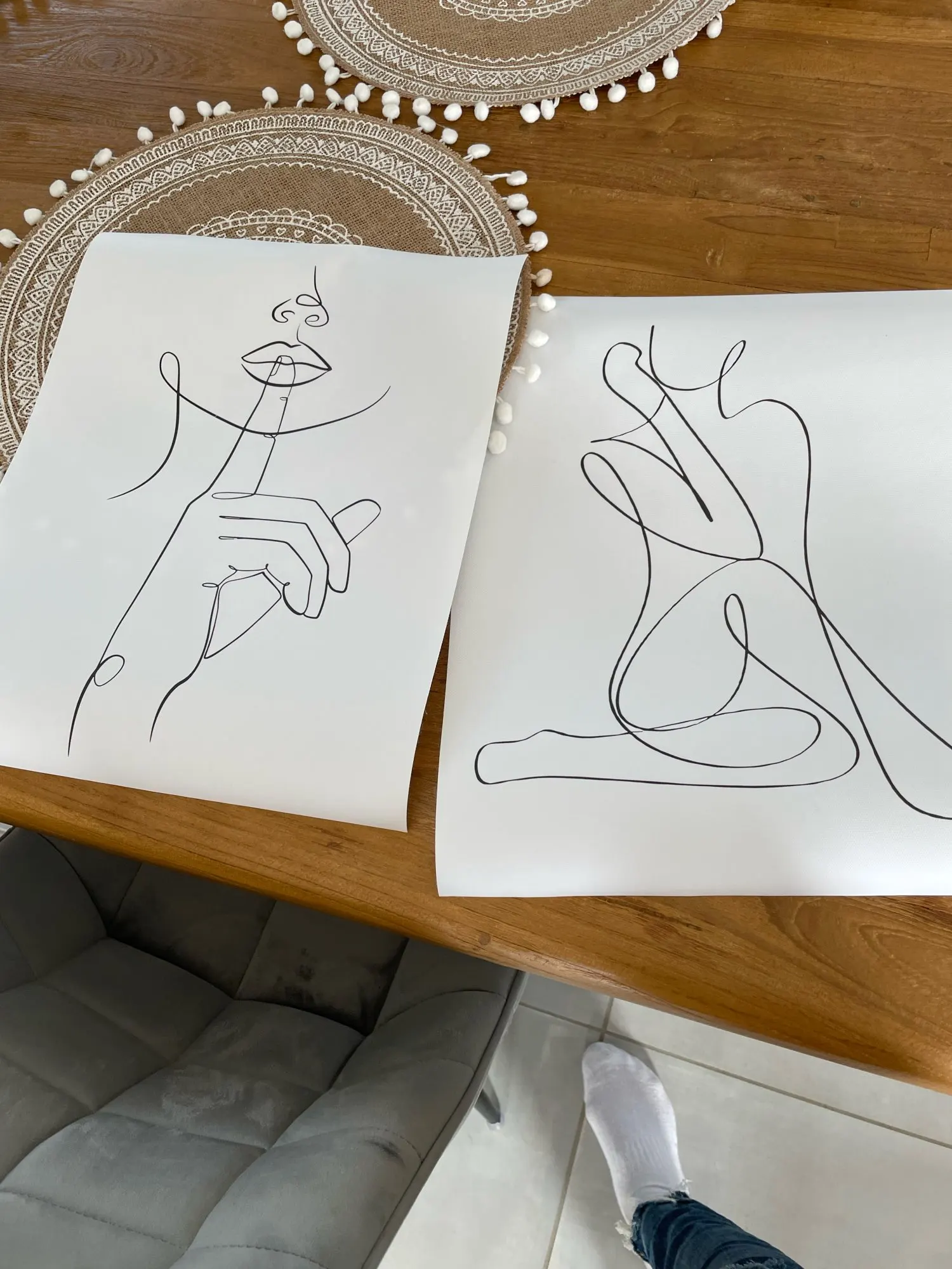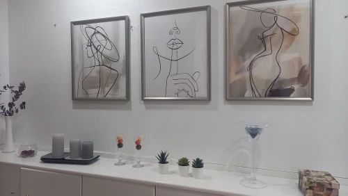 Абстрактная линия лица женщины двойная настенная Картина на холсте ...