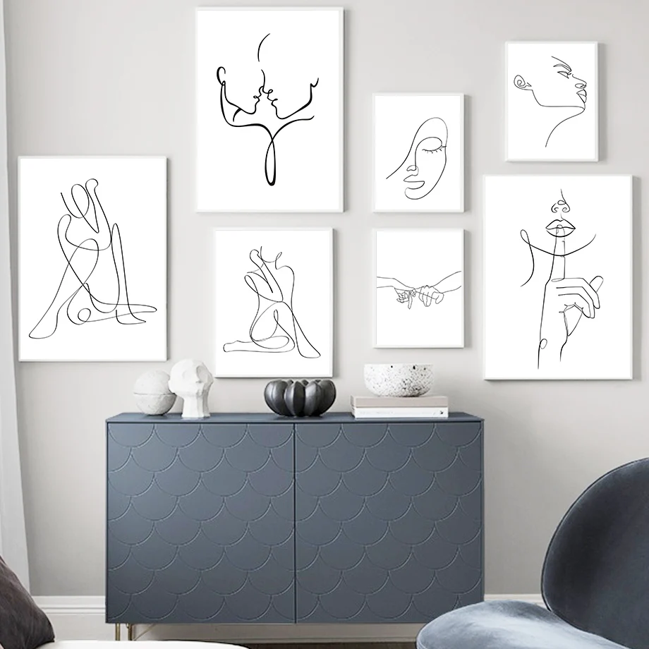 Абстрактная линия Женская Минималистичная настенная Картина на холс...
