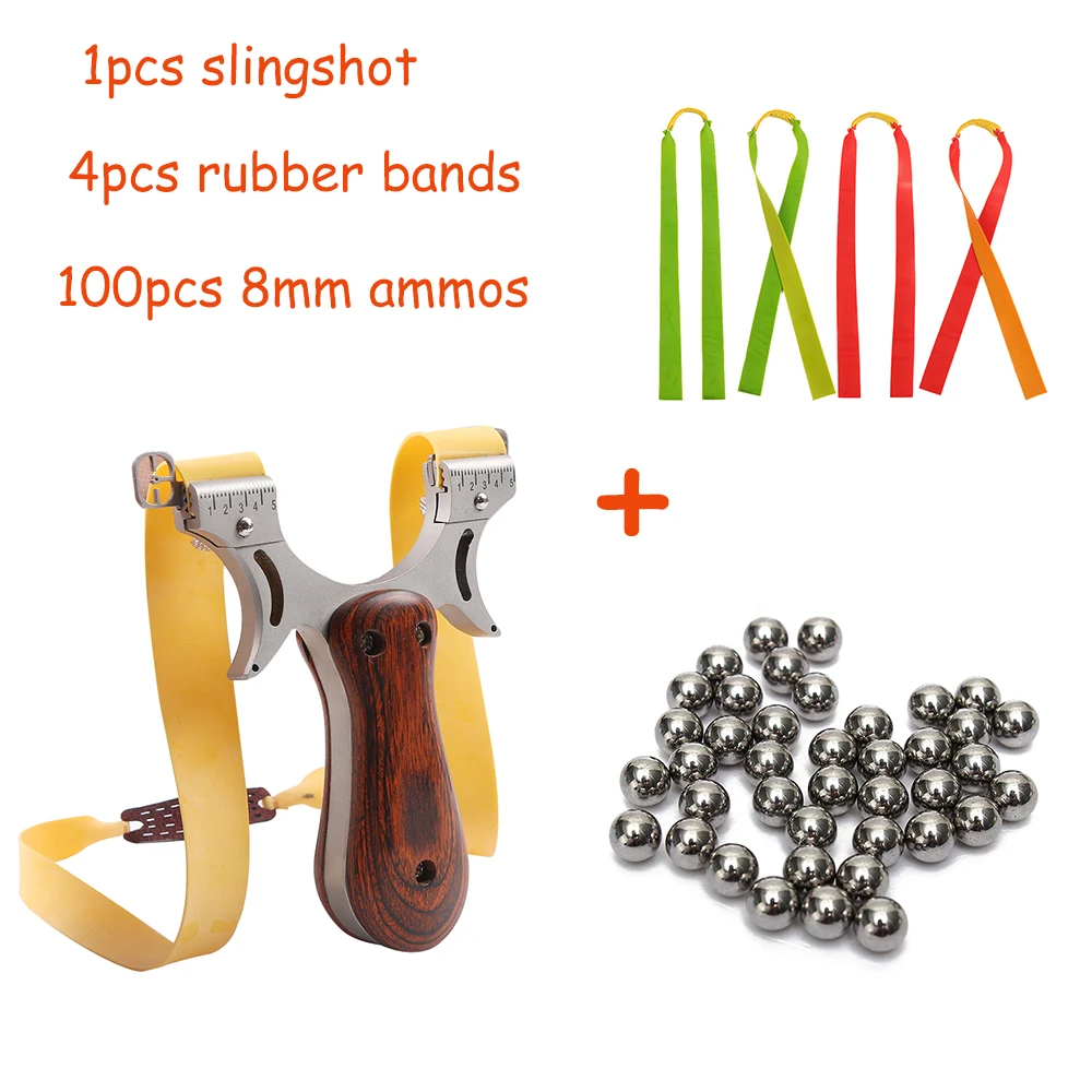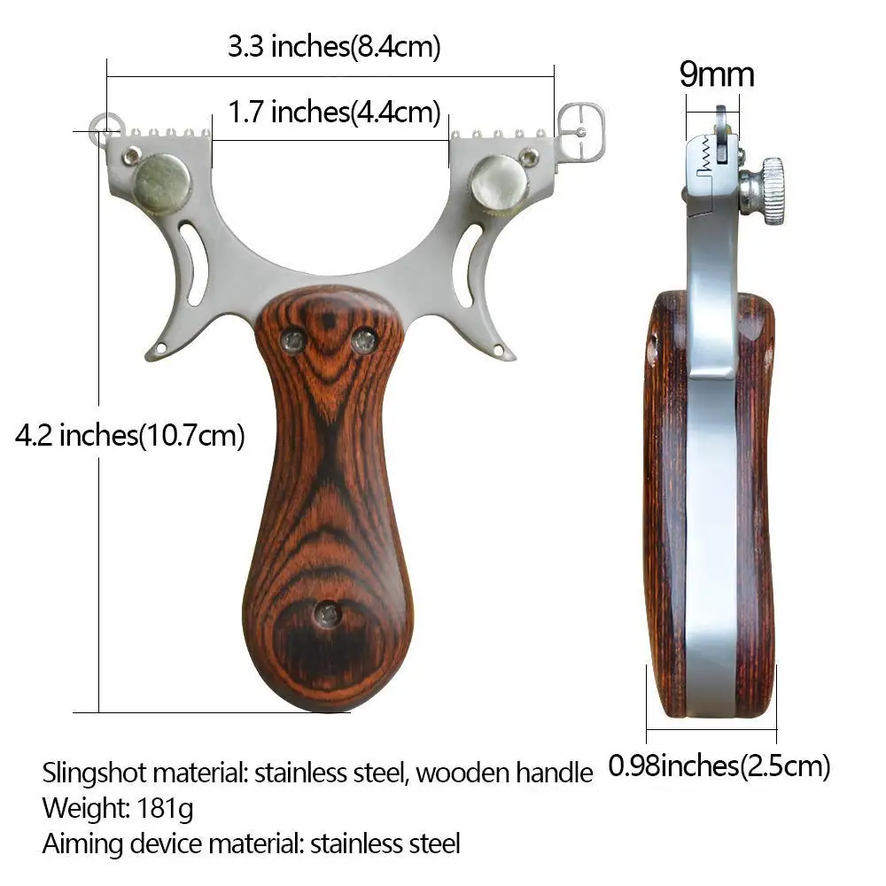 Рогатка для охоты, 5 точек, прицеливание, мощная деревянная Рогатка из нержавеющей стали с плоскими резиновыми лентами