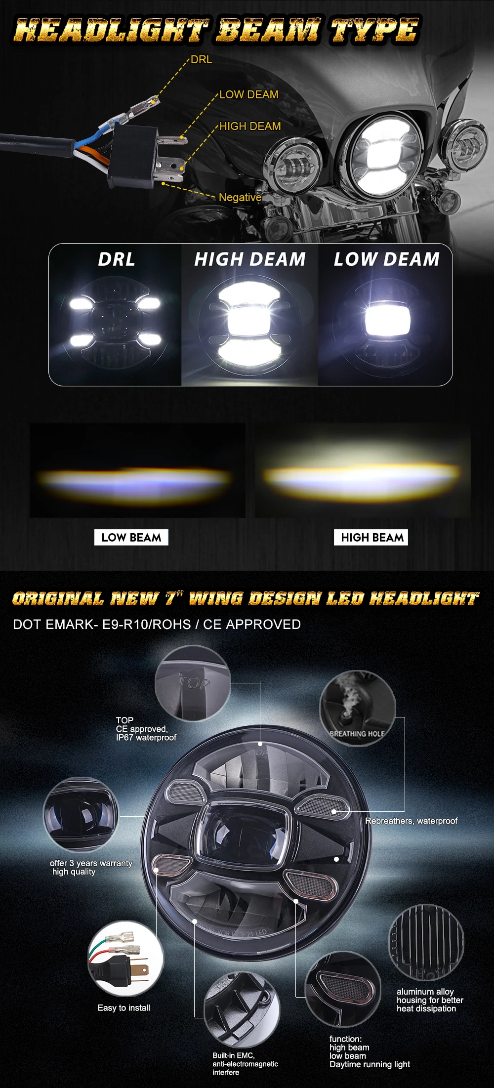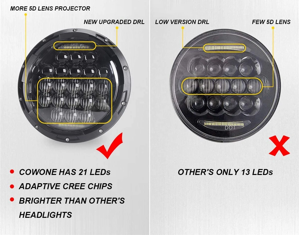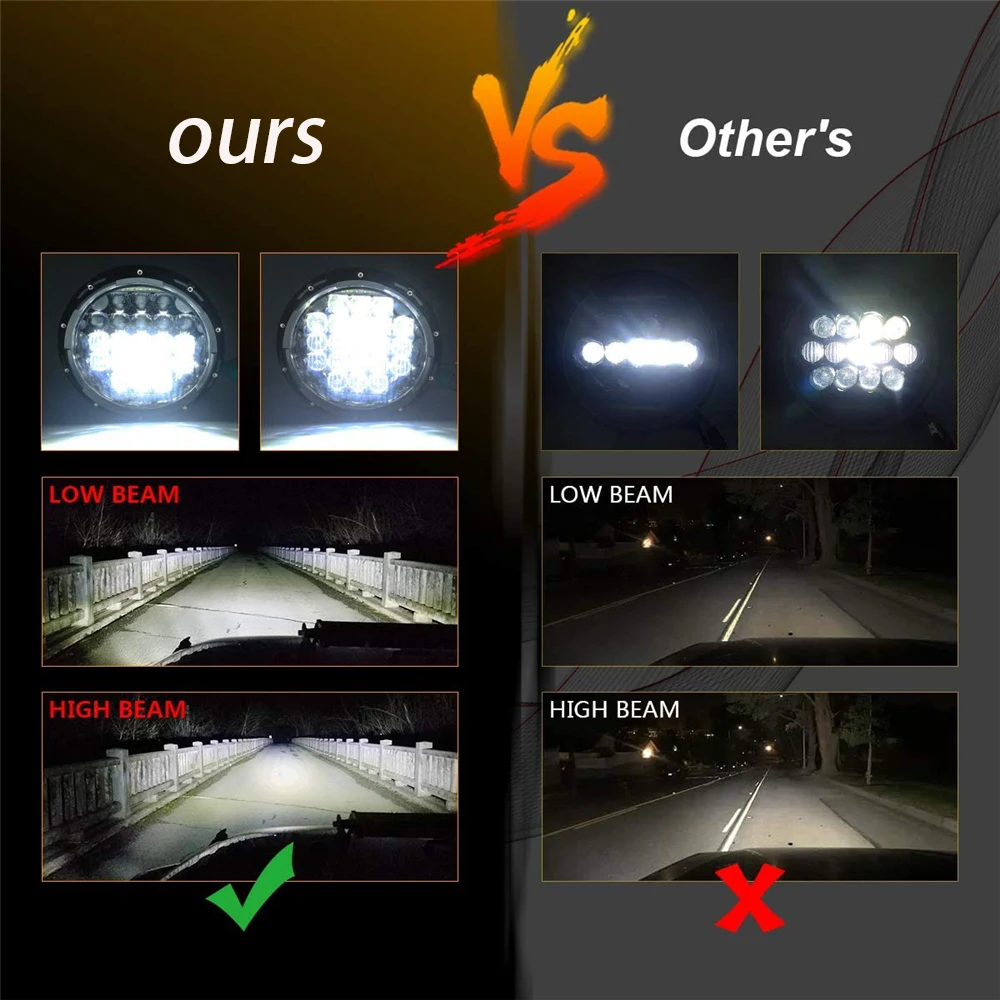 1. Изготовлен из высокая интенсивность Cree светодиодный чипы, гораздо ярче, чем оригинальные или других подобных 7 дюймов светодиодный фары для автомобиля2. Одобренный DOT гарантирует, что ваши огни являются легальными на дороге, удовлетворяя требованиям международных стандартов безопасности двигателя.3. Идеальный светильник, вырез острый и прямой, не слепить встречного движения.4. Высококачественный корпус из литого алюминия, усовершенствованная система отвода тепла.5. Новейший уникальный и красивый дизайн внешнего вида, встроенный EMC для защиты от электромагнитных помех.