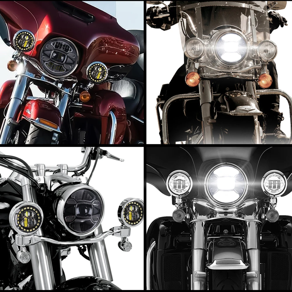 Передние фары H4 для мотоцикла, светодиодсветодиодный фара 7 дюймов для Harley Davidsion, Softail, Slim Fat Boy, передние фары 7 дюймов с ДХО, дальнийближний свет