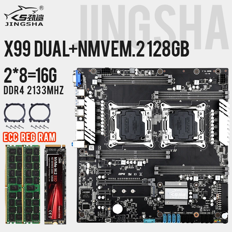 Комплект материнской платы JINGSHA X99 с двумя процессорами, 2*8 = 16 Гб DDR4 2133 МГц память ECC REG, NVME M.2 128 ГБ