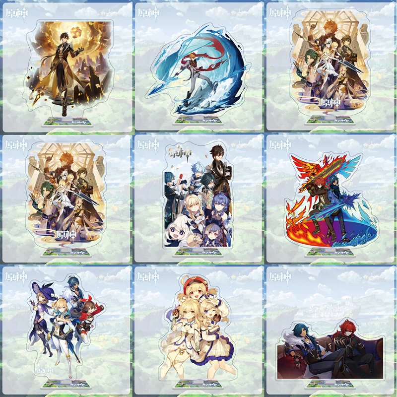 Аниме Фигурка Genshin Impact Zhongli Venti Keqing Лазерная фотопластина настольное украшение стоячий знак фигурки подарок новинка