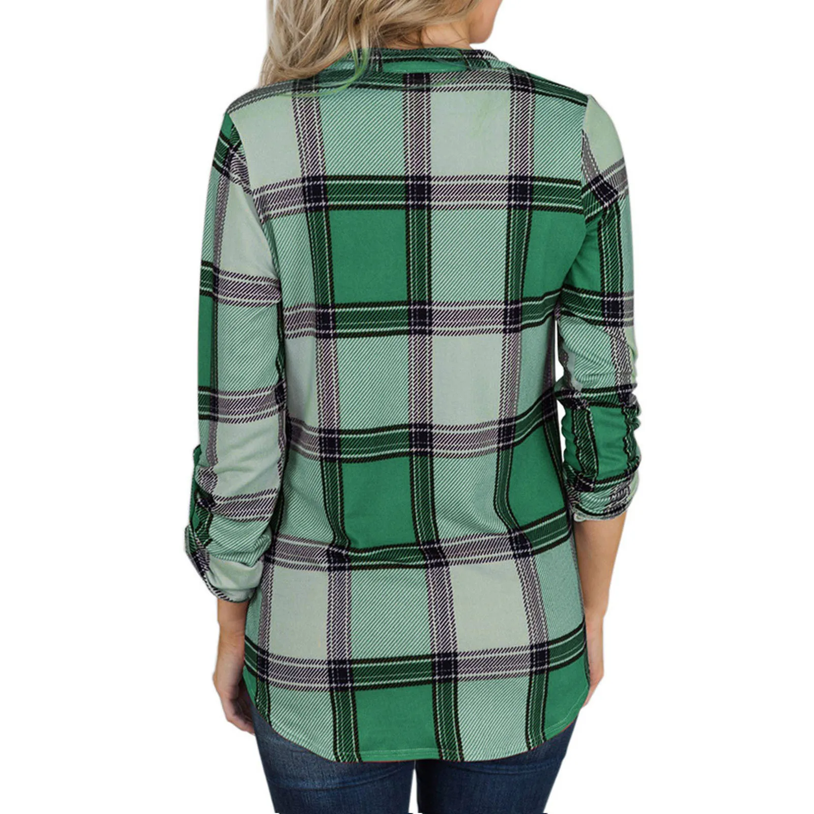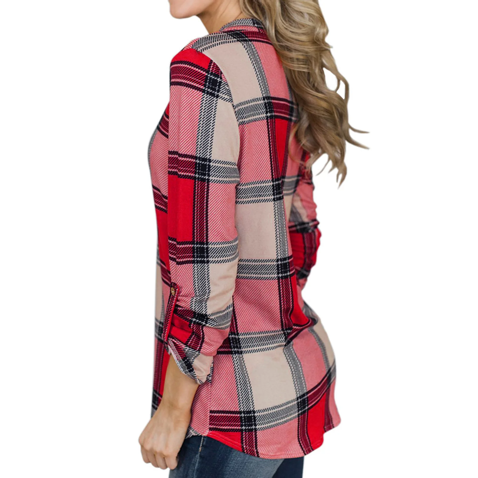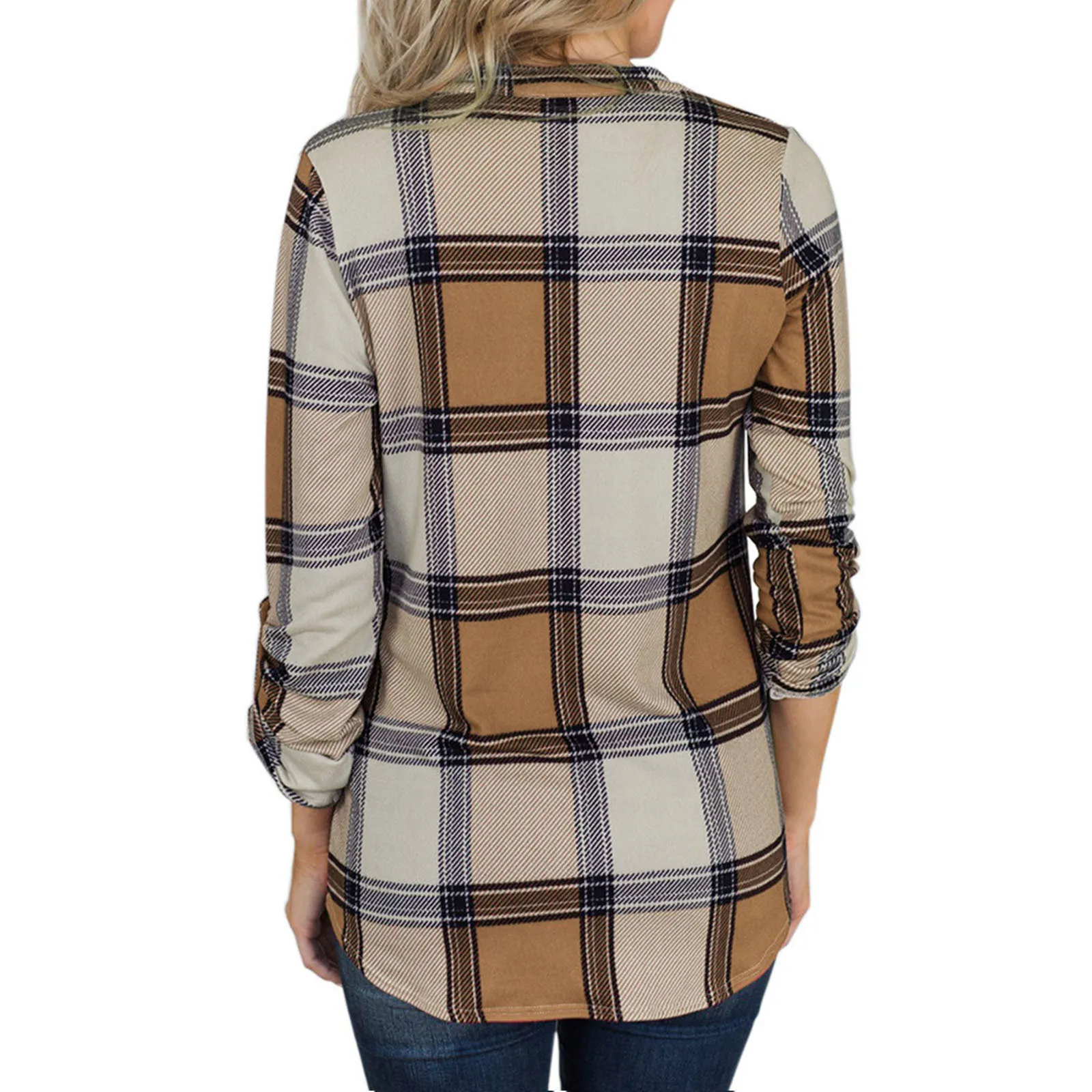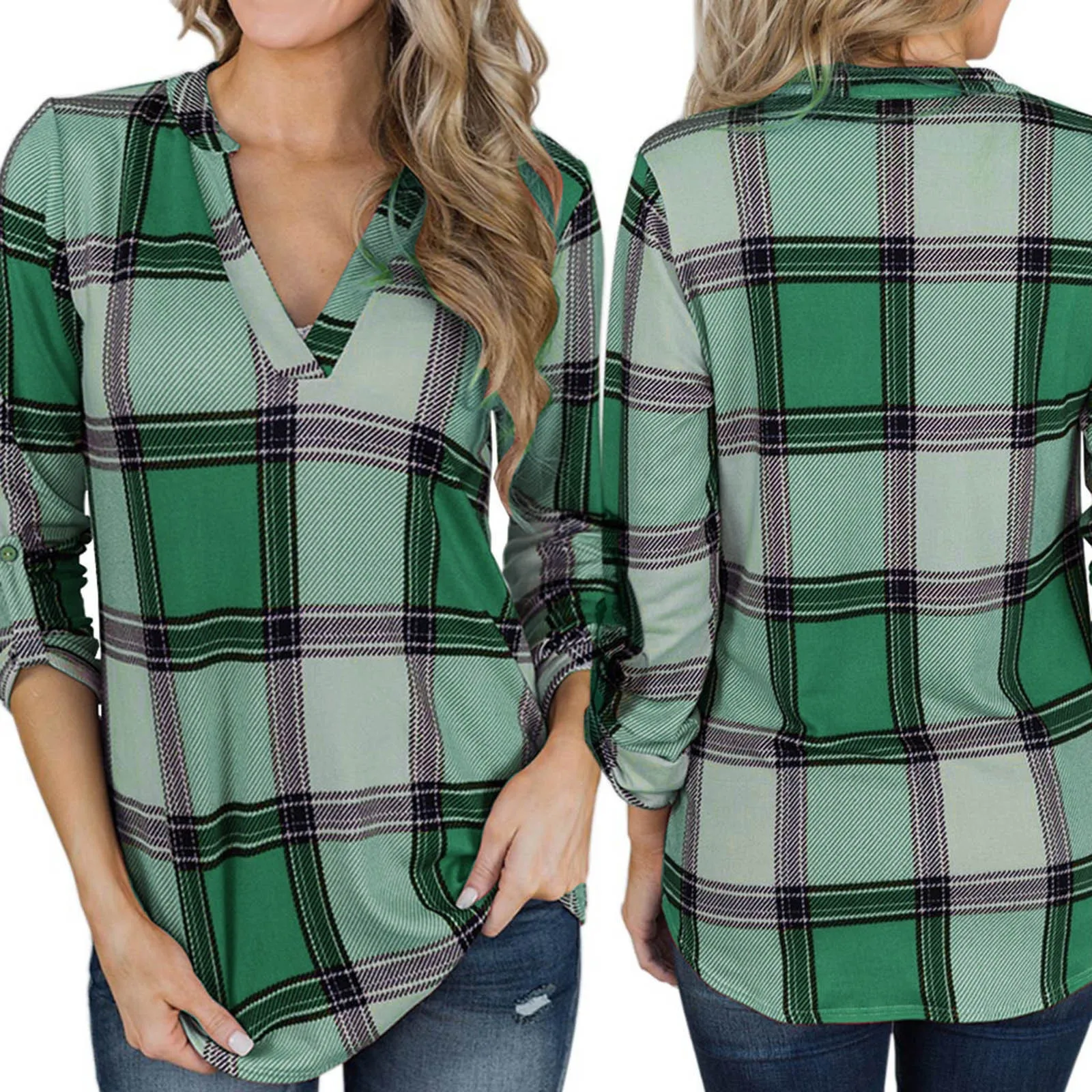 Женская Повседневная Туника с длинным рукавом, свободная Винтажная футболка в клетку с V-образным вырезом и принтом, большие размеры, осень 2021