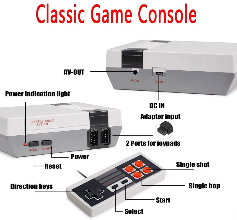 Классическая игровая машина, Оживите хорошие времена. Две игровые ручки, чтобы играть с семьей и друзьями. Встроенные 620 классических игр для вас. (Встроенная игровая консоль 620 имеет несколько дубликатов игр, пожалуйста, прочитайте это заявление перед покупкой, спасибо.)