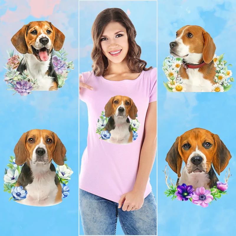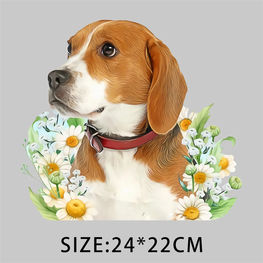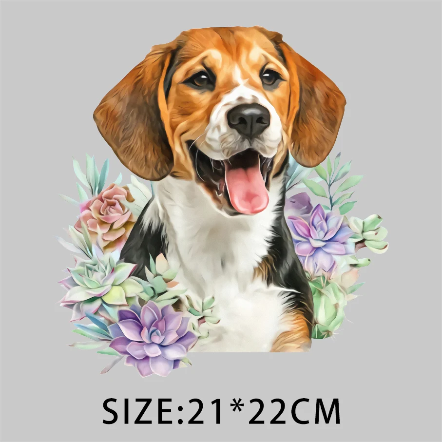 Beagle собака животные цветы термальные наклейки теплопередача ПВХ патч моющиеся виниловые наклейки для одежды наклейки на одежду